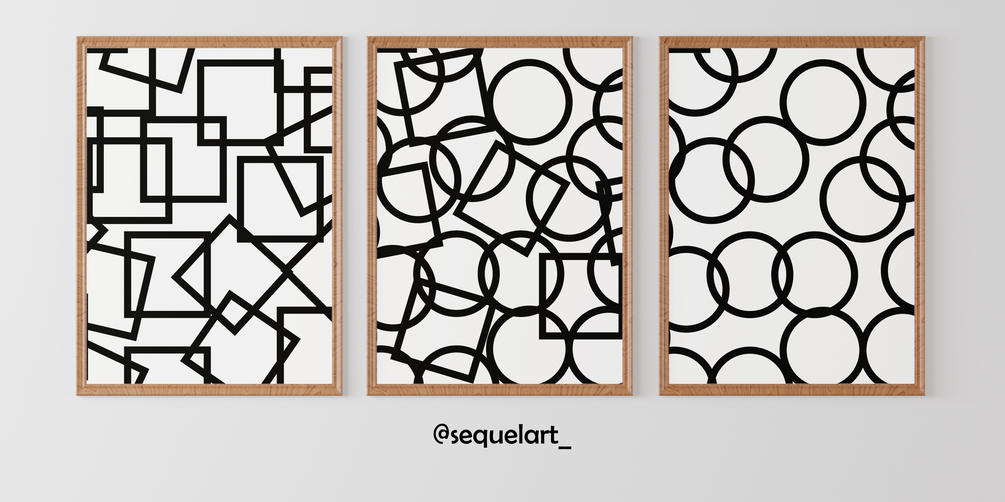 Printable Set Wall Art Set, Home Decor Monochrome Shapes